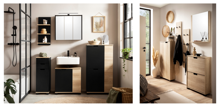 Die neue Möbelserie Emmik für Diele, Bad und Homeoffice ist unter anderem bei Tchibo und Otto erhältlich. Sie wird gestaffelt in die Werbung aufgenommen. Mit den dekorativen Platten Innovus Karlstad Oak Pale steht Natürlichkeit im Mittelpunkt: „Das Design strahlt Ruhe, Freundlichkeit und trotzdem Wärme aus. Zudem ist es super flexibel im Mix mit Unidekoren. Was mir am besten gefällt, ist, dass der Grundton gleich ist und man somit Ton in Ton bleibt, aber durch die Streifen eine kleine Akzentuierung erhält“, erklärt Kemper. Die Natürlichkeit wird durch die Textur „Flow“ auch haptisch hervorgehoben: Die einzigartige, klassische Textur überzeugt mit sanften Kreuzlinien. „Das lässt die Oberfläche unserer Möbel sehr authentisch aussehen, was immer wichtiger für den Endverbraucher ist.“
